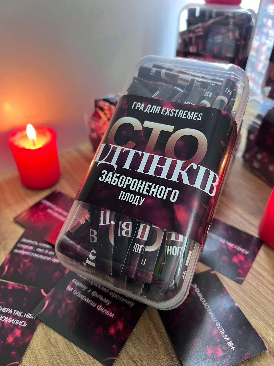 «СТО ВІДТІНКІВ ЗАБОРОНЕНОГО ПЛОДУ» - це еротична гра для дорослих, яка поєднує в собі елементи рольових ігор, творчості та сексуальної експресії.