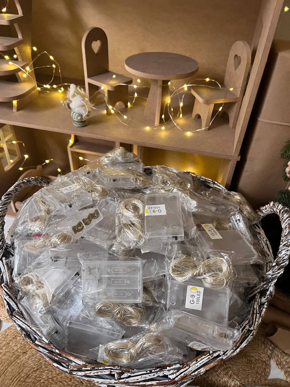 Довжина: 10 м. Кількість LED: 100. 1 режим свічення. Живлення: батарейки АА - 3шт. (Входять у вартість)