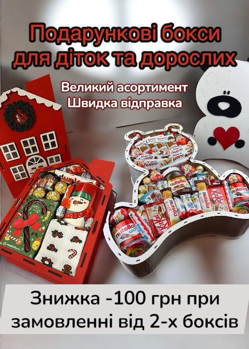 Друзі, ми активно приймаємо замовлення на подарункові бокси до Нового Року та Різдва! Радимо Вам завчасно подбати про подарунок і краще забронювати свій боксик уже зараз, адже перед 6 грудня (Миколая), ми відмовили більше ніж 100 людям, хоч би як нам цього не хотілося. Відправки ми здійснюємо кожного дня, але якщо Ви хочете, щоб Ваш подарунок прийшов на конкретну дату, ми можемо зарезервувати за Вами бокс і відправити коли Вам потрібно. Щиро дякуємо Вам за довіру і за розуміння ❤️❤️❤️