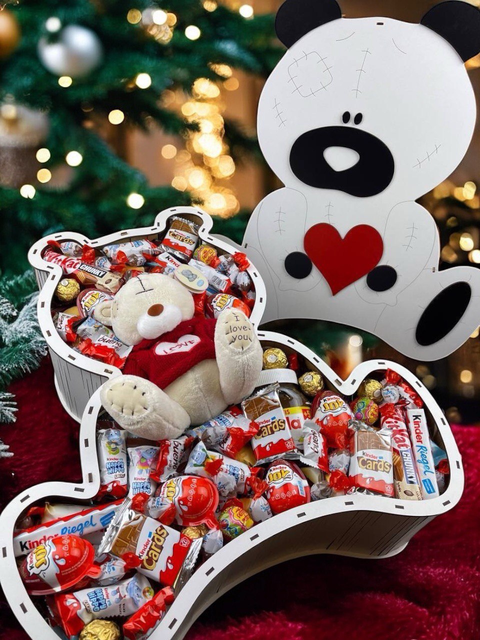 🎅деревʼяна коробка у вигляді новорічного ведмедика